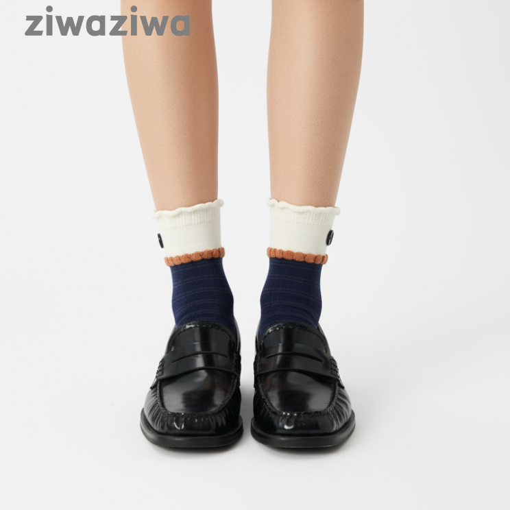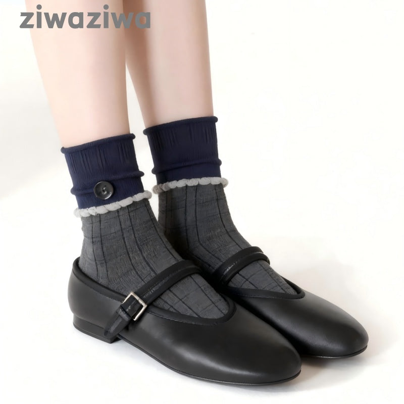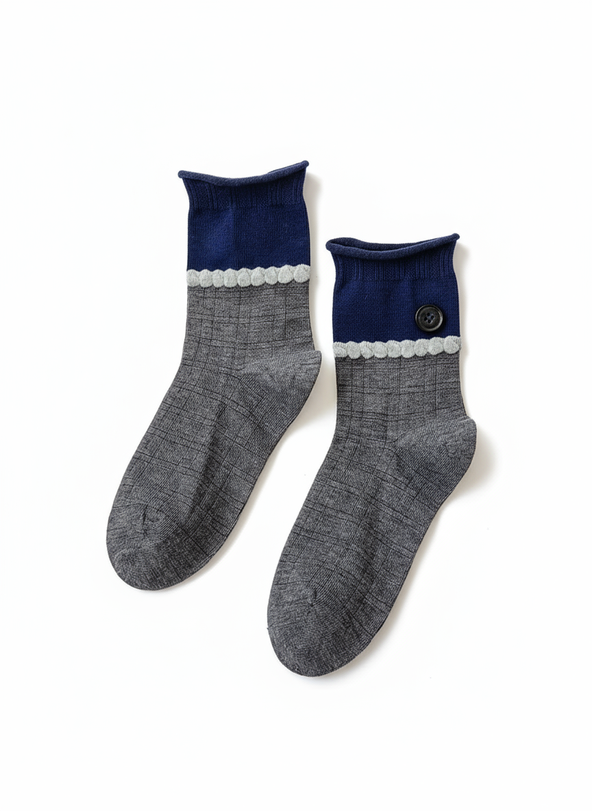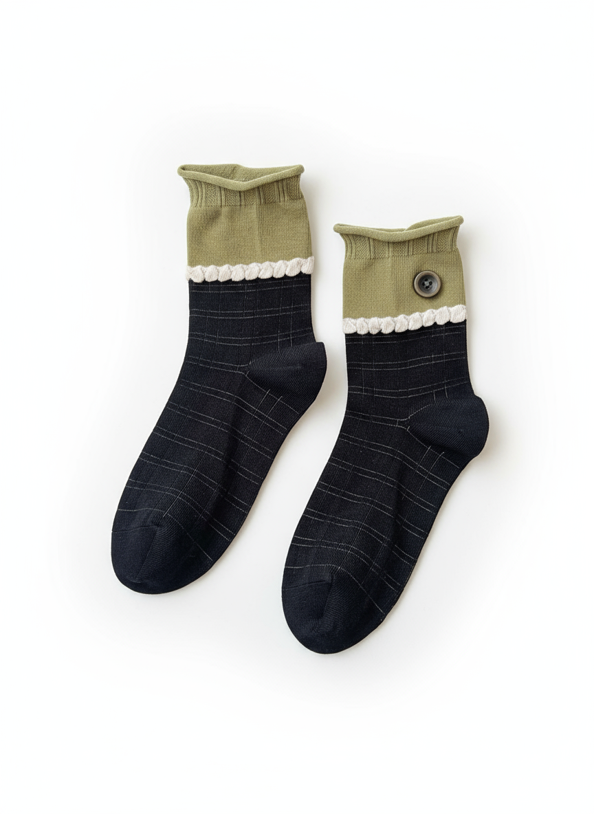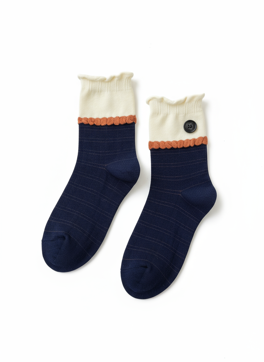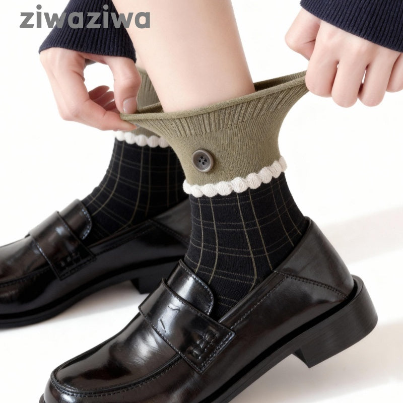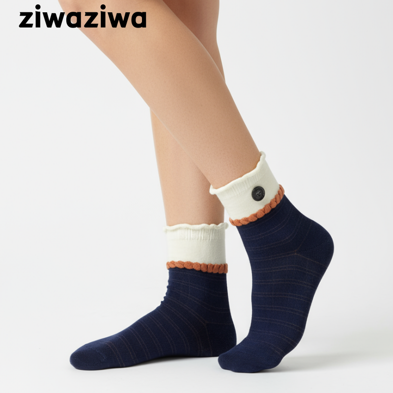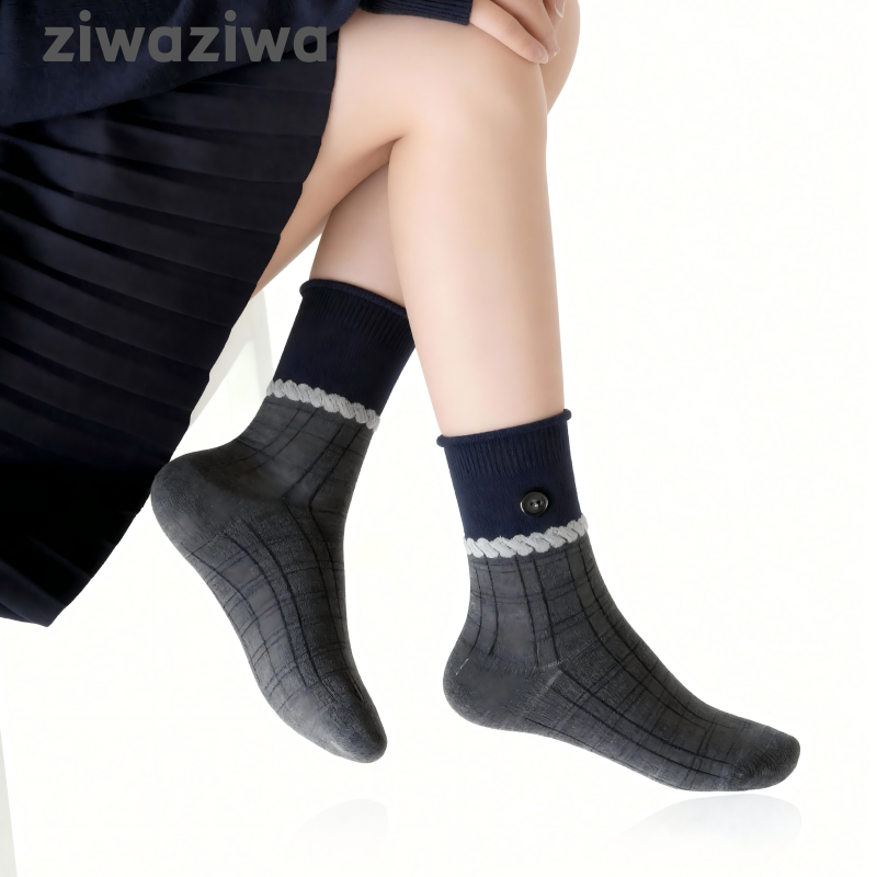 シームレスソックスボタンデザイン学院風クルーソックス